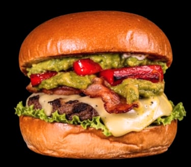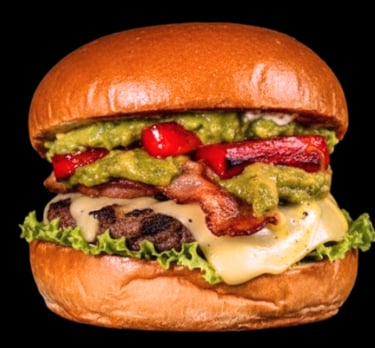 Carne de sirloin jugosa y bien sellada, tocino crujiente, queso fundido, lechuga fresca, tomate y cebolla caramelizada. Son la base de todas nuestras burguer