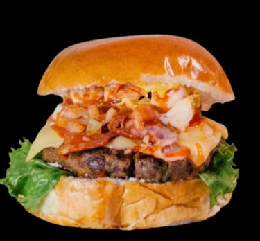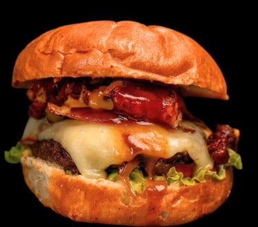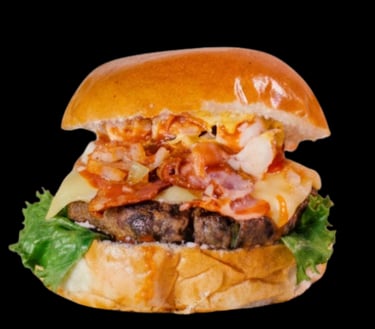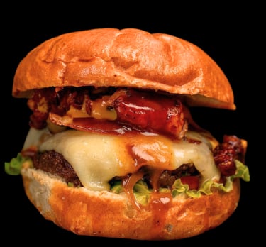 Carne de sirloin jugosa bañada en salsa BBQ, triple tocino crujiente, aros de cebolla, queso fundido, cebolla caramelizada y ese sabor ahumado irresistible.