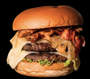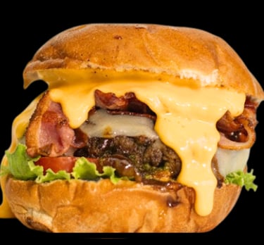 Carne de sirloin jugosa bañada en queso cheddar líquido, doble tocino crujiente, cebolla caramelizada y todo el sabor intenso del queso.