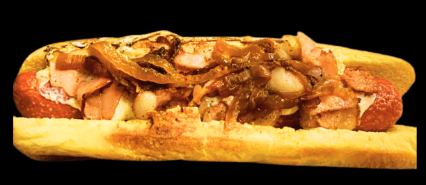 La base de todos nuestros dog´s salchicha de pavo, pan jumbo esponjoso, queso de hebra derretido, salchicha de pavo, tocino clásico, cebolla caramelizada lleno de sabor.